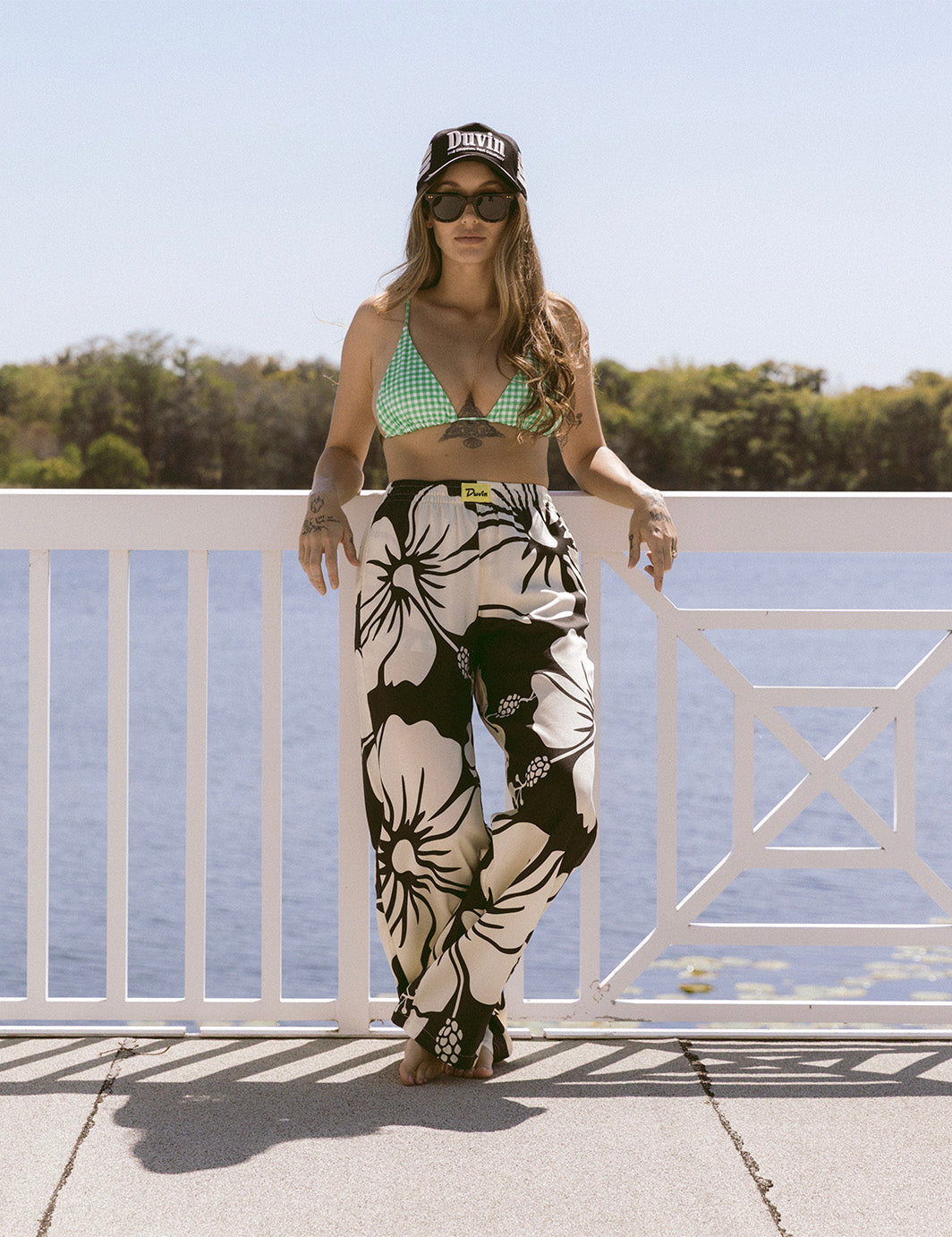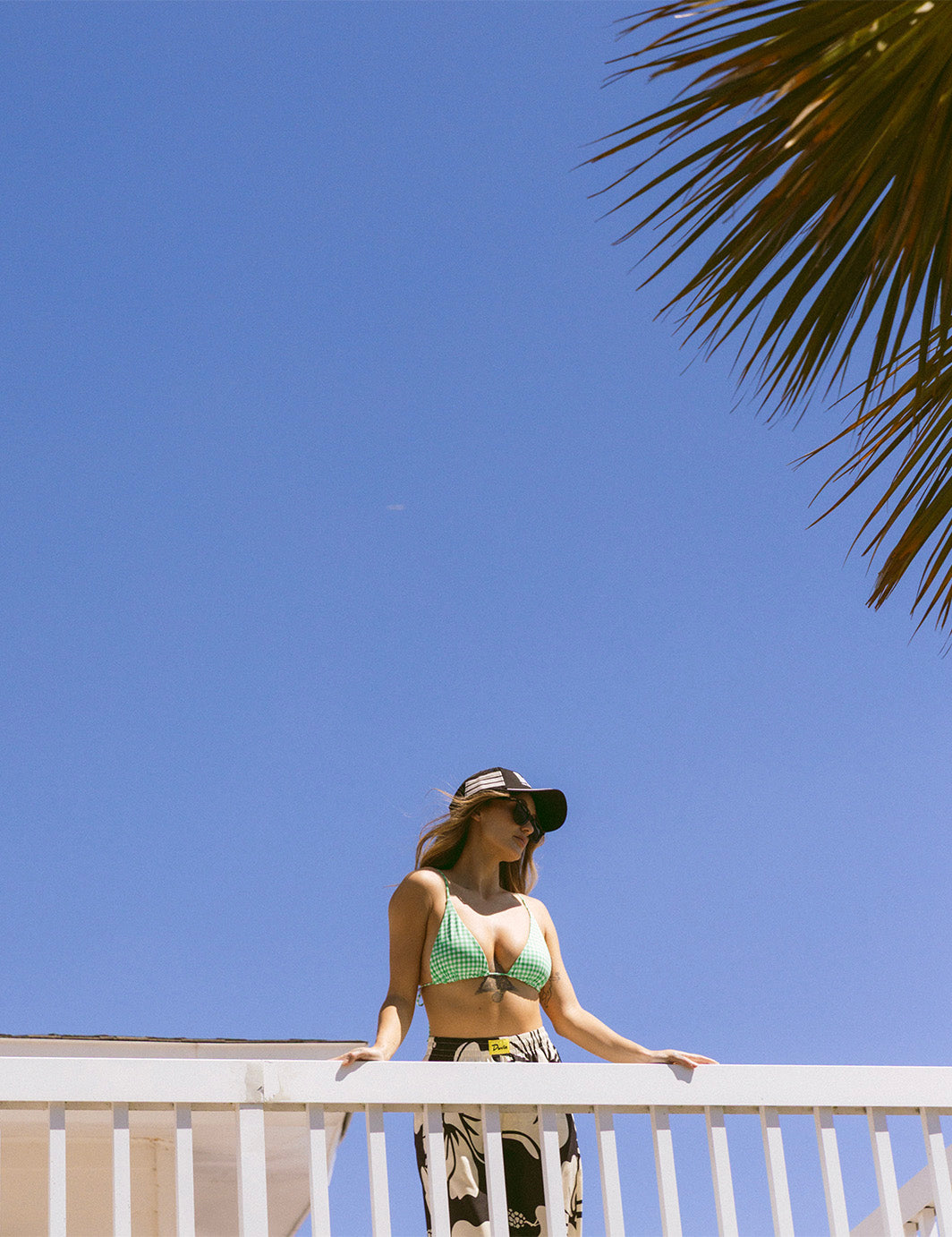 Jo (studio + lifestyle model) : 5'4" [34" Hips, 25" Waist] Wearing sizes (L Bikini Top, S Bikini Bottom, S Cabana Pants, S Cabana Shirt, S Tank, S Nylon Shorts, 26 Work Pants & 26 Walk Shorts)
