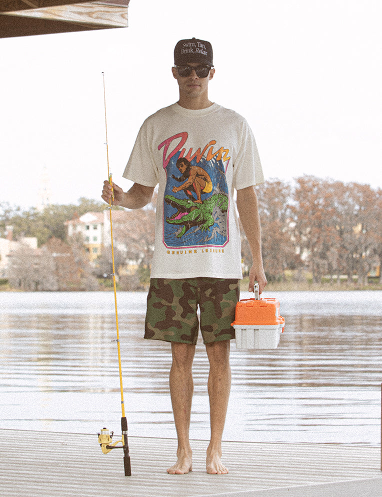 Our 4 way stretch boardshort is cut with an 18 inch outseam and made from a heavier weight fabric that feels substantial without sacrificing breathability. It is designed to move with you in and out of the water, balancing performance features with an easy all day wear. Built like a technical short, worn like it has nowhere to be.