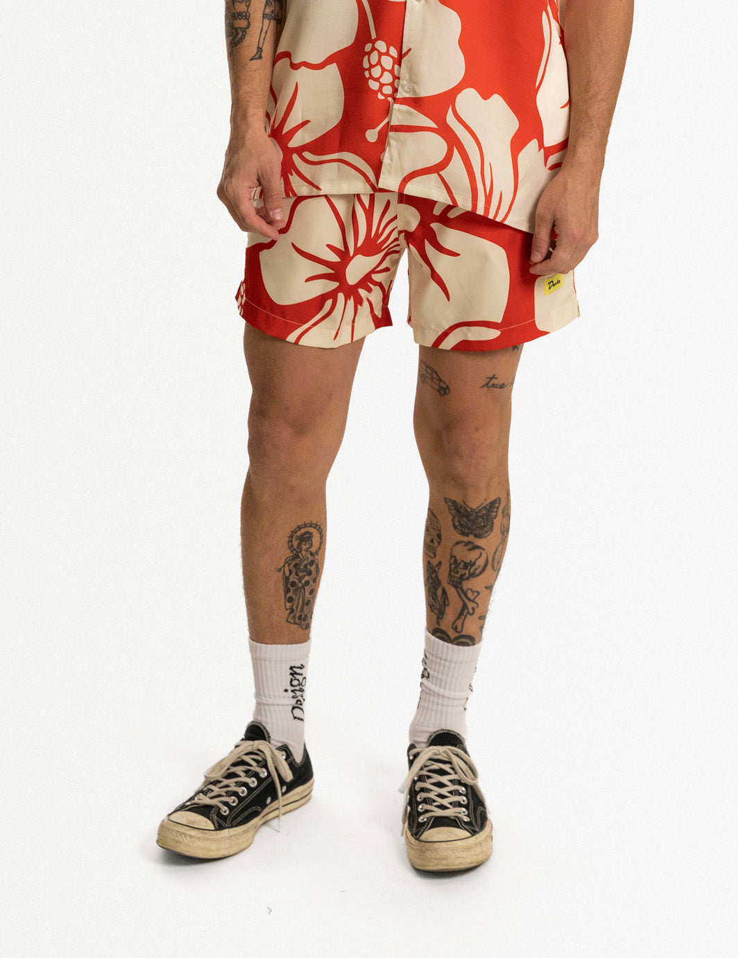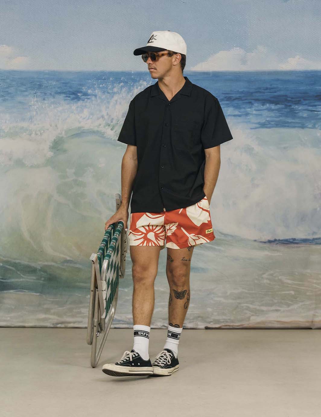 Meet your new favorite beach trunk. Our elastic Volley Swim Shorts are your new go-to for leisurely days in the sun. These vintage trunks are made from quick-dry fabric in a comfort short/wide fit. Every pair is equipped with a tearaway size tag for max waist comfort. Pair it with your favorite Duvin tee and hat.