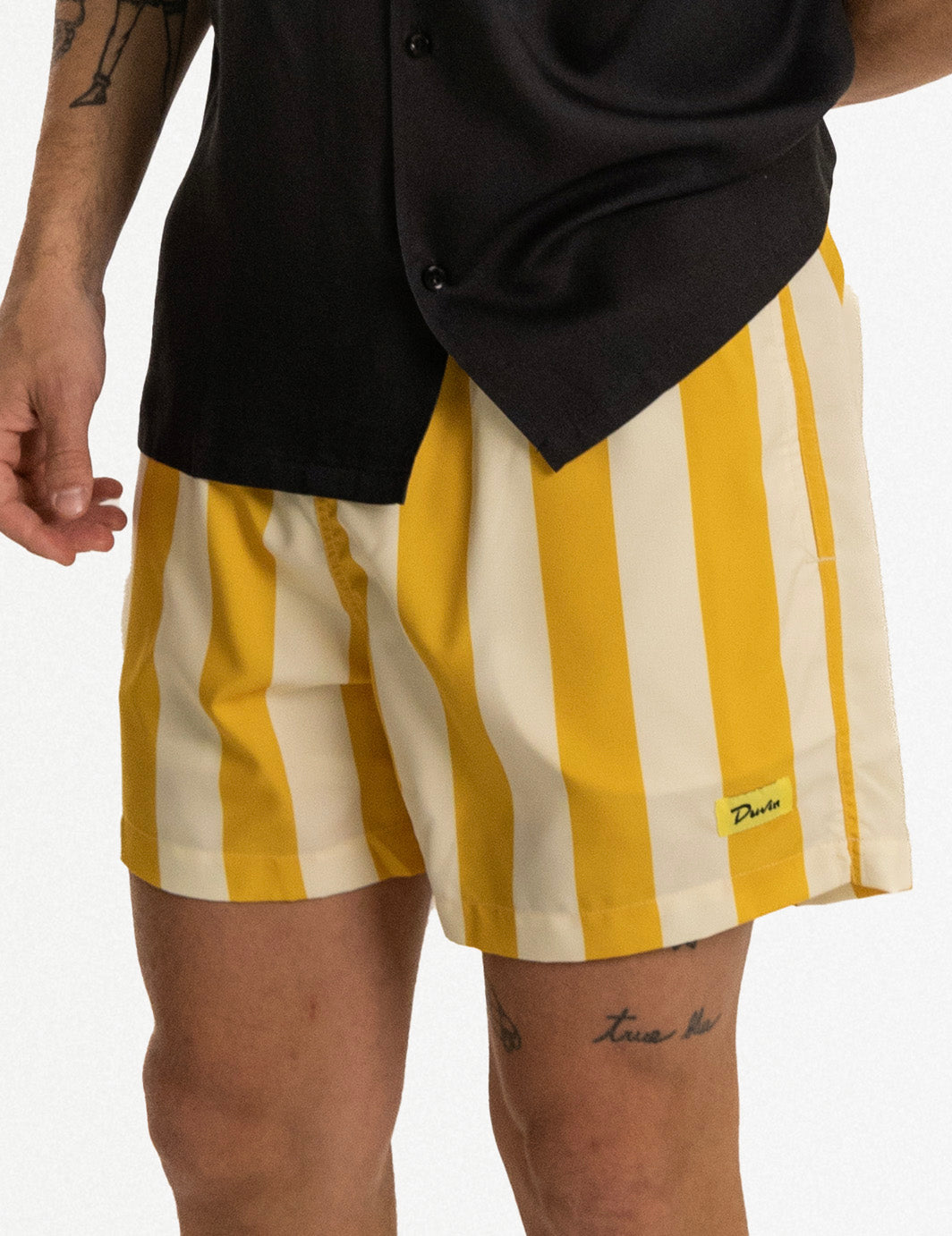 Meet your new favorite beach trunk. Our elastic Volley Swim Shorts are your new go-to for leisurely days in the sun. These vintage trunks are made from quick-dry fabric in a comfort short/wide fit. Every pair is equipped with a tearaway size tag for max waist comfort. Pair it with your favorite Duvin tee and hat.