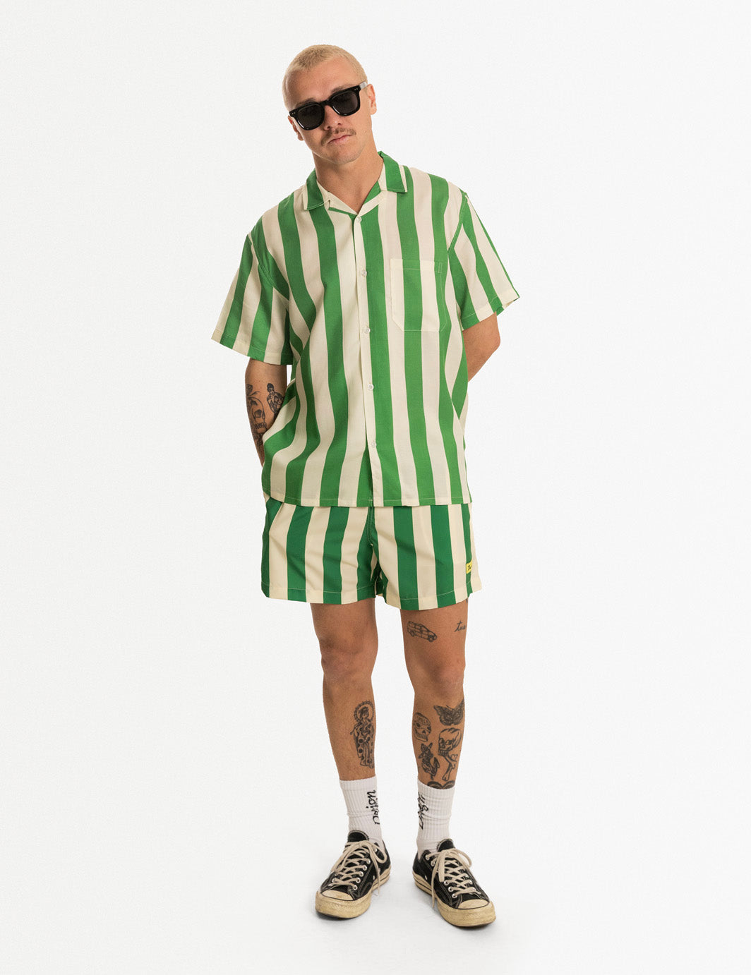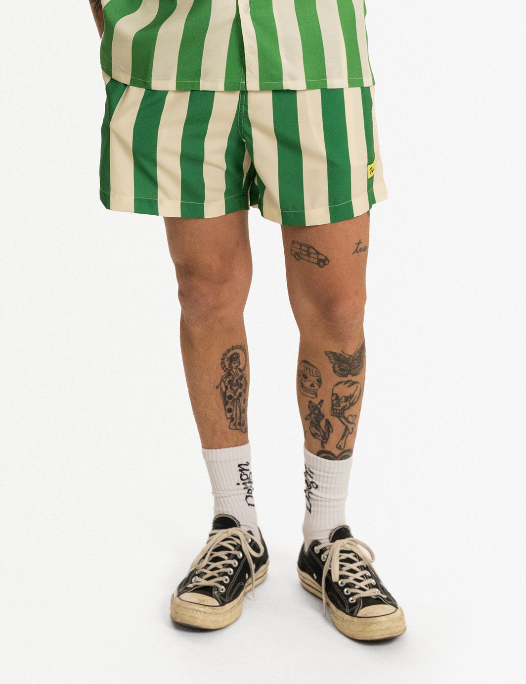 Meet your new favorite beach trunk. Our elastic Volley Swim Shorts are your new go-to for leisurely days in the sun. These vintage trunks are made of 100% Polyester in a comfort short/wide fit. Every pair is equipped with a tearaway size tag for max waist comfort. Pair it with your favorite Duvin tee and hat.