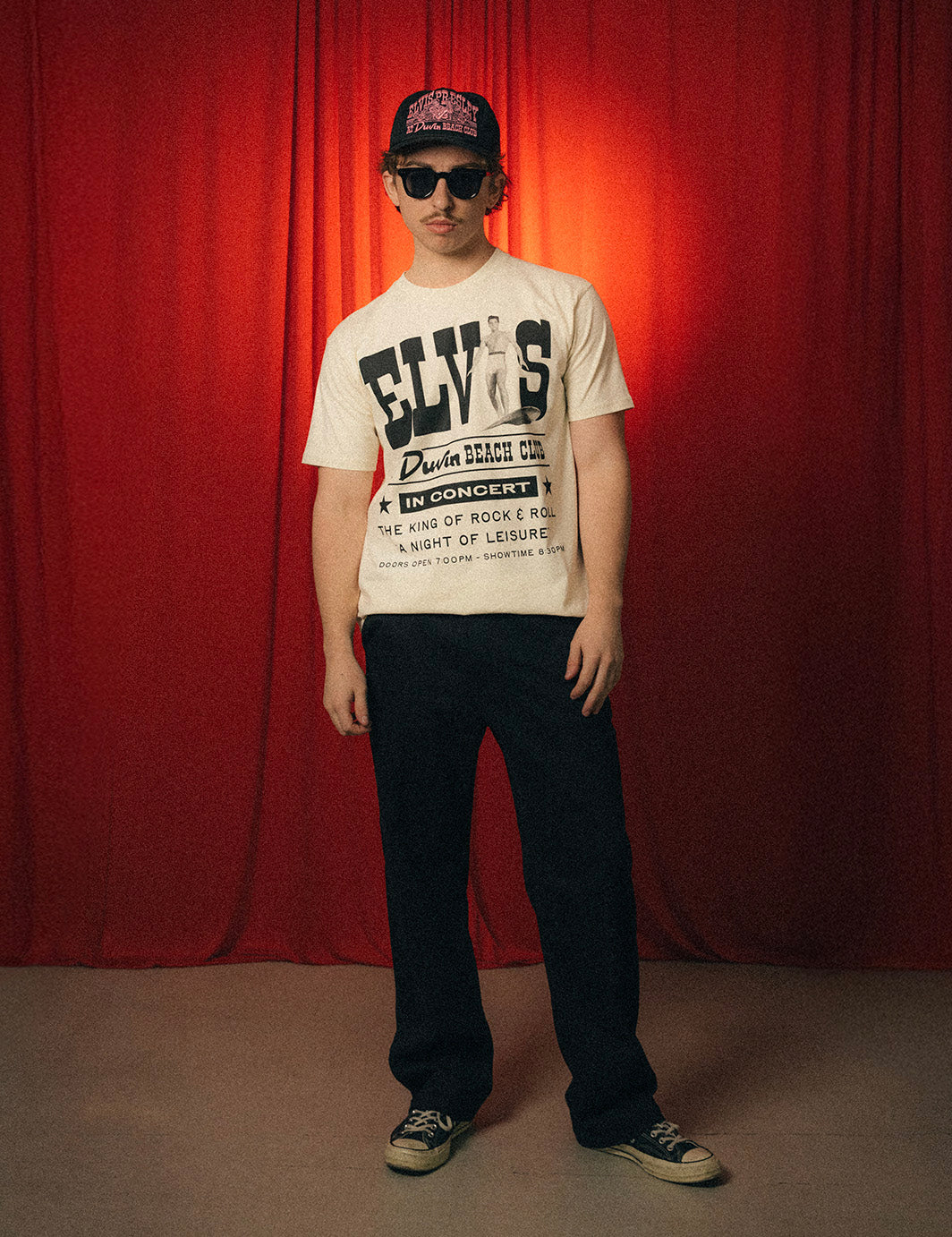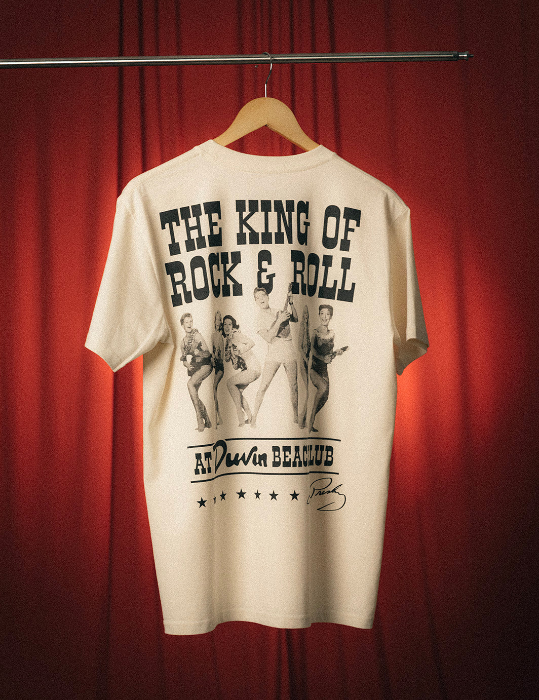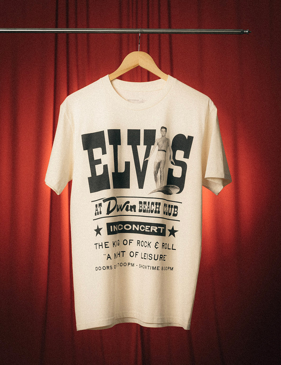A throwback concert tee for the show that never was. Standard fit, soft-washed cotton, and Elvis front and center. Made to feel like you picked it up at the merch table in ’62.