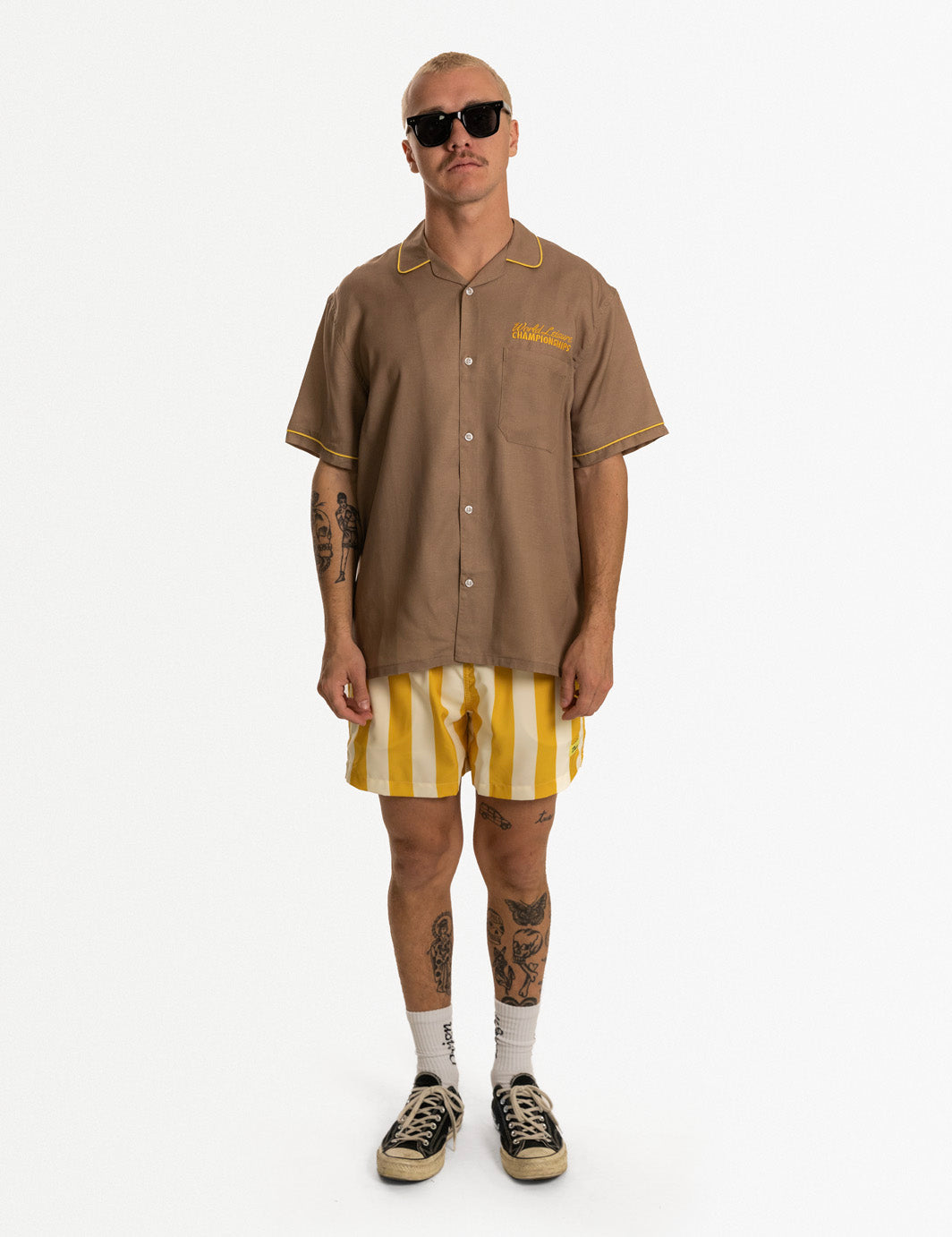 The short sleeve cabana shirt is made from a tencel, linen blend in a relaxed fit. The tencel is made in an environmentally friendly process and known for being a soft, anti-wrinkle, anti-shrink, high-quality fabric.