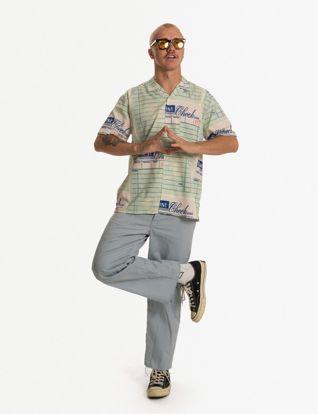 "The new Leisure stretch material is insanely elite. Super light weight and breathable. The shirt straight up does not wrinkle at all when you are wearing it. Cannot state enough how big of a game changer this fabric is. Rest or Recreation, these bad boys are gonna be a staple in my closet."