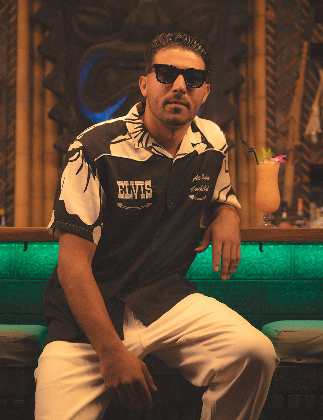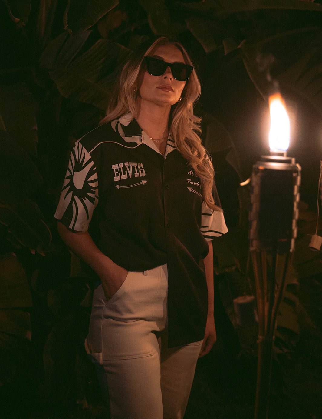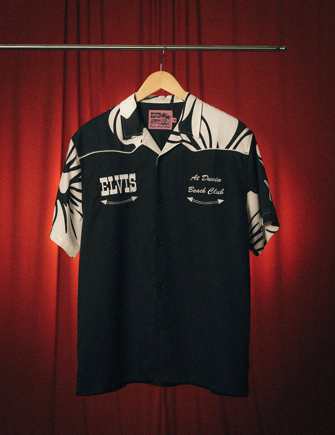 Our resort-ready buttonup featuring bold floral blocking and subtle Elvis callouts, made from a tencel, linen blend in a relaxed fit. Lightweight and easy to dress it up, wear it open, or live in it poolside.