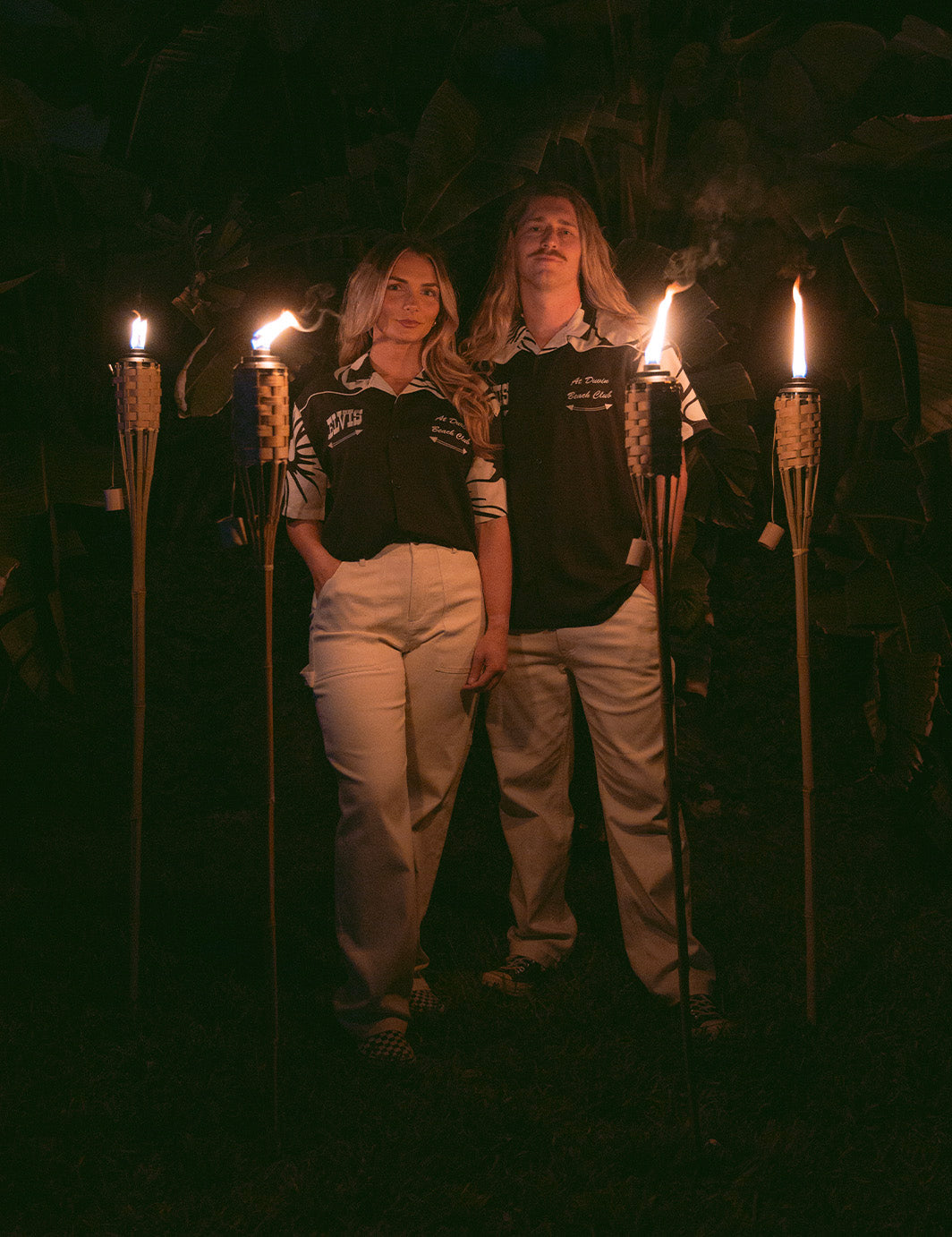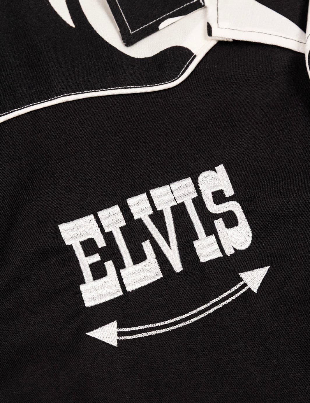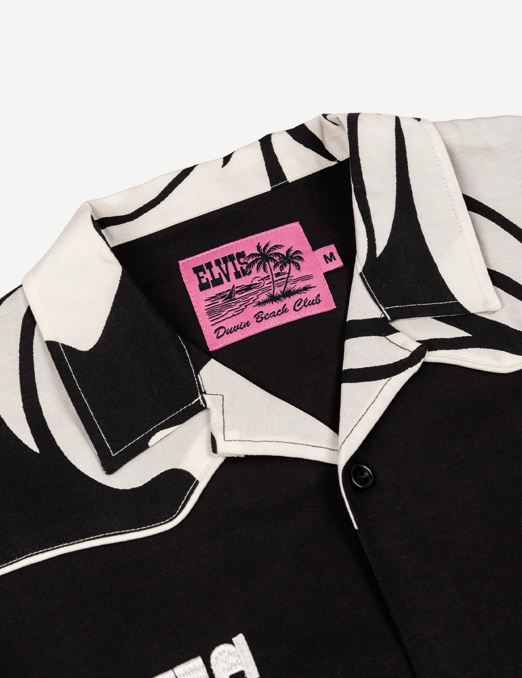 Our resort-ready buttonup featuring bold floral blocking and subtle Elvis callouts, made from a tencel, linen blend in a relaxed fit. Lightweight and easy to dress it up, wear it open, or live in it poolside.