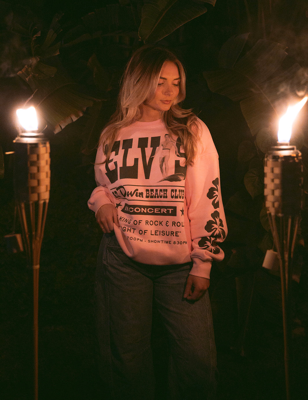 A limited-edition crewneck celebrating The King of Rock ‘n’ Roll. Oversized print, hibiscus sleeve hits, and a soft vintage wash. Made to feel like you picked it up at the merch table in ’62.