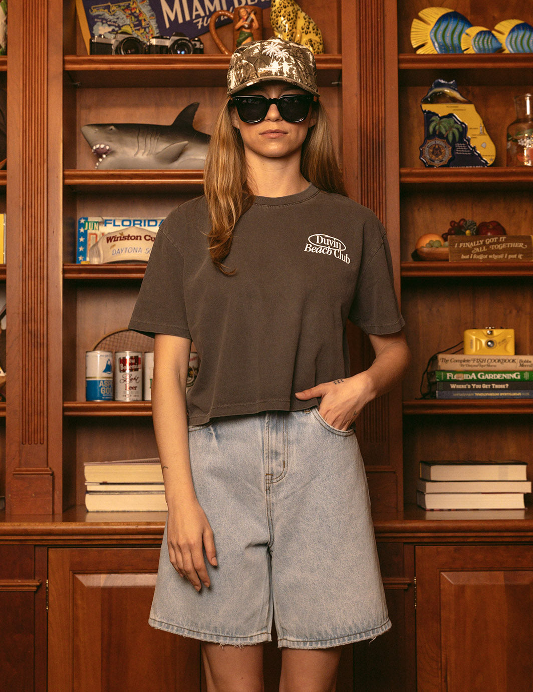 A cropped tee made from a mid-weight cotton, these tees offer the perfect balance of comfort and durability, finished with a pigment vintage dye and garment wash that gives each piece that sun-faded, broken-in feel like it's been part of your rotation for years.