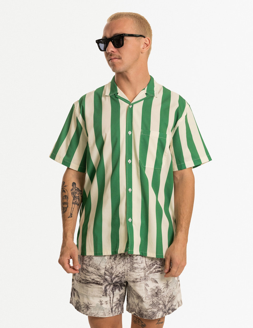 The Short Sleeve Cabana Shirt in our new leisure stretch is ultra comfortable and durable. Constructed out of a perforated performance stretch fabric - you'll be able to wear this over and over. All leisure stretch shirts are anti-wrinkle, anti-shrink, high-quality fabric.